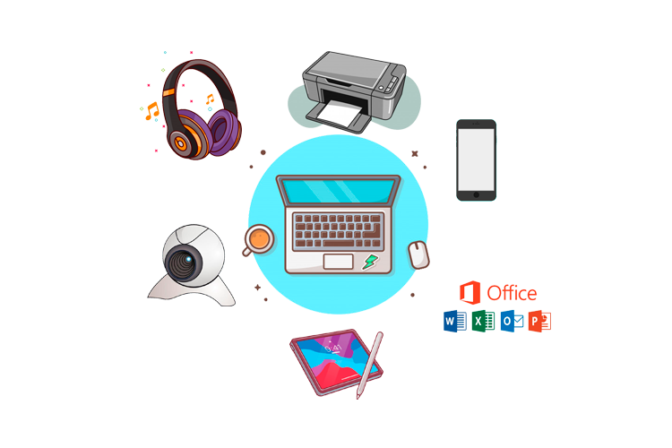 In addition, all your special needs such as a computer, printer, tablet, monitor, docking station, camera, headset, keyboard, mouse,